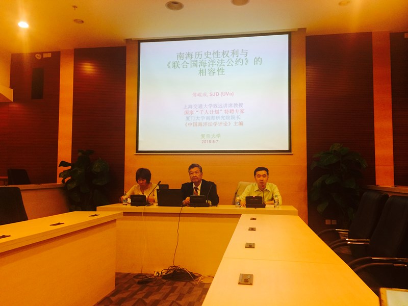 复旦大学文科科研处携手复旦发展研究院、上海高校智库研究和管理中心,在复旦大学110周年校庆推出了“智库月”系列讲座。厦门大学南海研究院院长傅崐成教授受邀做“智库月”系列讲座的首发演讲。以“中国海洋战略:三个层级的法律问题”为主题,傅崐成教授就南海历史性权利与《联合国海洋法公约》的相容性,于5月7日下午在复旦大学美国研究中心,为到场师生带来一场专题讲座。