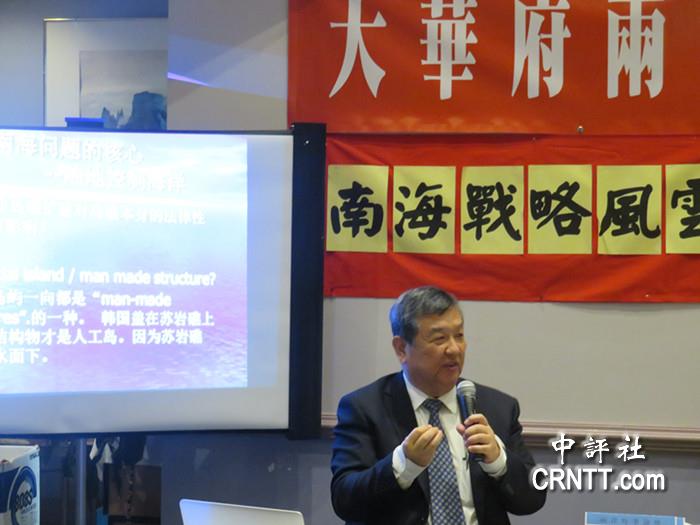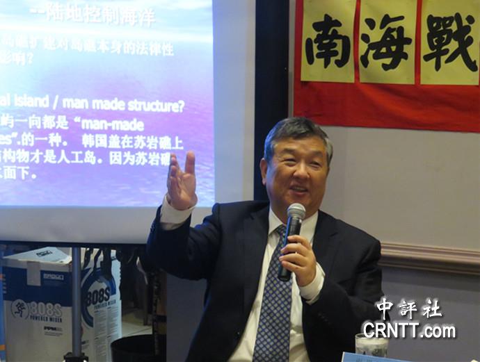 傅崐成指出中国在南沙填海造地岛礁按照联合国海洋法公约均可主张12海里领海 中评社记者 余东晖摄