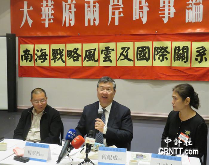 “大华府两岸时事论坛”和“新党之友会”8日晚举办的“南海问题与国际法”的讲座上,傅崐成做此强调。曾任台湾“立法委员”和行政院顾问的傅崐成,此次与四川大学教授杨翠柏一起来美访问,在洛杉矶、纽约、华府三地与美国学界和侨界进行交流,从历史和法律角度宣示中国在南海问题上的立场和主张。