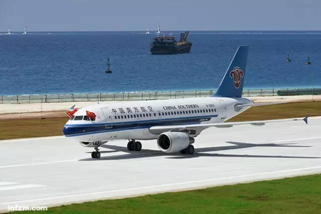 7月13日,中国政府征用的南方航空公司、海南航空公司两架民航客机先后从海口美兰国际机场起飞,经过近2个小时的飞行,分别于10时29分、10时28分在美济礁新建机场和渚碧礁新建机场平稳着陆。(新华社记者 陈益宸/图)