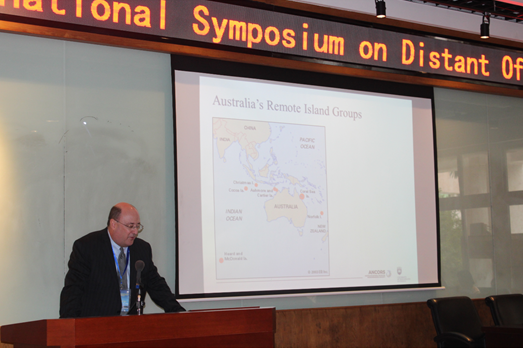 澳大利亚卧龙岗大学国家海洋资源与安全中心主任Stuart Kaye教授重点介绍了两组群岛--Ashmore and Cartier Islands以及Heard and McDonald Islands的管理(海洋保护区、渔业)以及合作情况(与印尼、法国之间的协议和合作)。